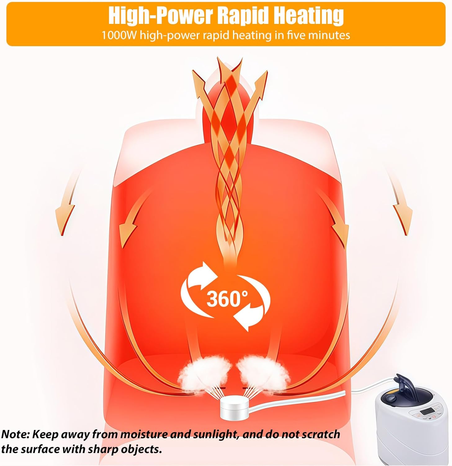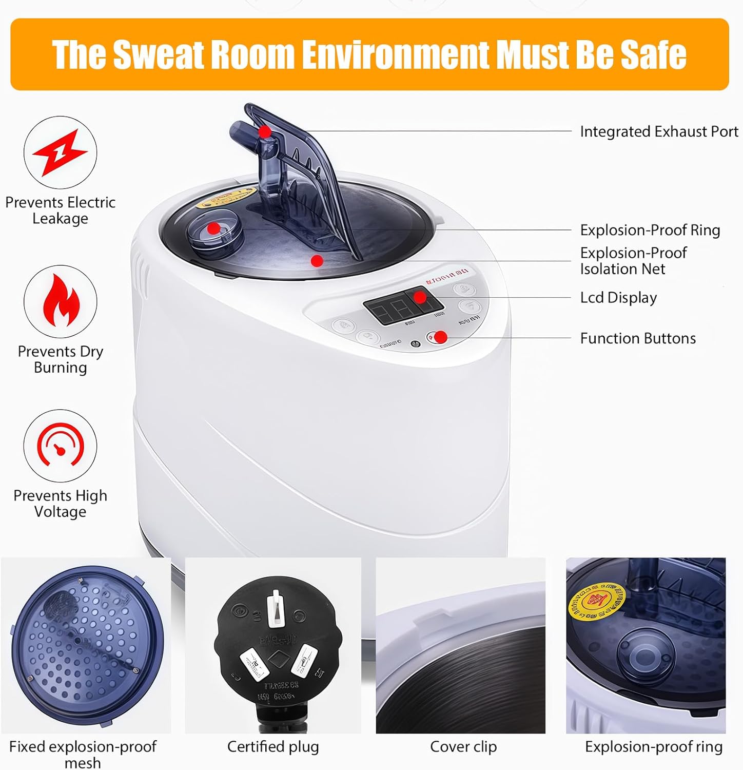 Střední kapacita: zařízení má objem 3 litry a je proto ideální pro domácí použití. Střední objem zefektivňuje tvorbu páry a zajišťuje dobrý uživatelský zážitek. Tato unikátní přenosná parní lázeň je velmi přenosná, malá a snadno se přenáší na místo, kam chcete jít, a umožňuje vám saunovat kdykoli a kdekoli.