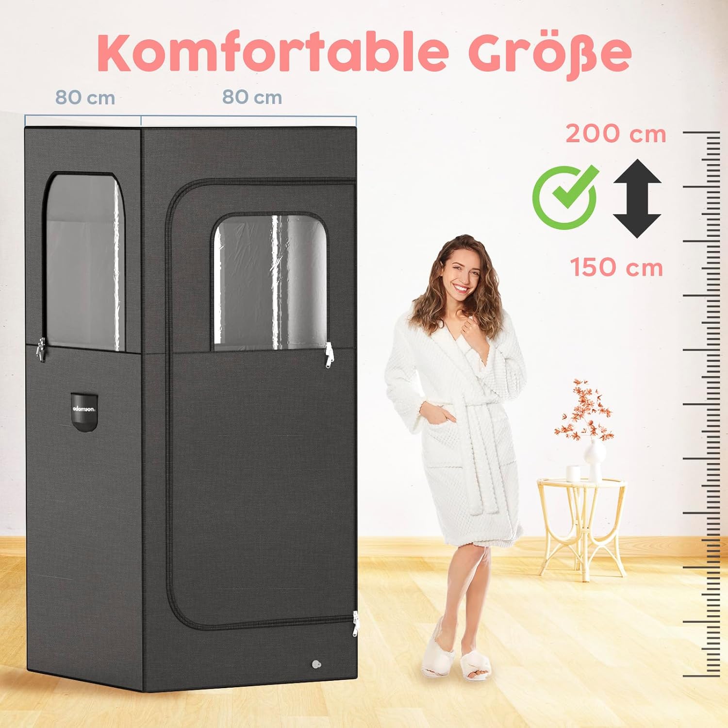 Přenosná sauna na věky: naše velká parní sauna je vyrobena z vysoce kvalitních materiálů a je navržena pro časté používání. Její robustní konstrukce zaručuje dlouhodobý výkon a roky radosti. Naše vnitřní sauna je navržena pro snadnou instalaci a provoz. Odnímatelný rám umožňuje rychlou montáž a demontáž, zatímco konstrukce zajišťuje odolnost a dlouhou životnost.
